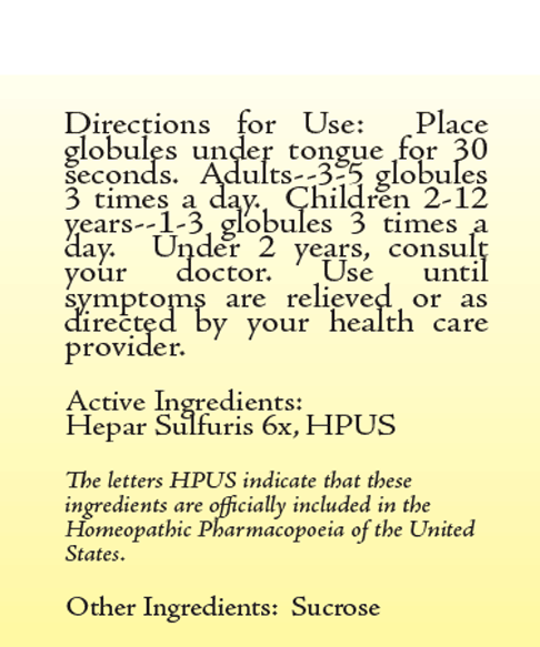 Directions for Use: For best results place globules under the tongue for 30 seconds. Adults-3-5 globules 3 times a day. Children 2-12 years-1-3 globules 3 times a day. Under 2 years, consult your doctor. Use until symptoms are relieved or as directed by your health care provider.