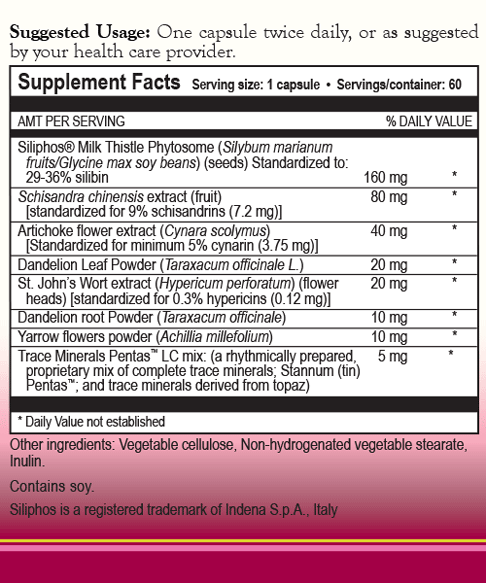 Beside the fruits of the milk thistle we have incorporated also the seeds, the flowers, the leaves and the roots from other plants that are known to support the liver. Thus a truly full spectrum formula has resulted that can be taken daily as a detoxifying and liver supporting supplement to assist both the energetic and physical functions of the liver.