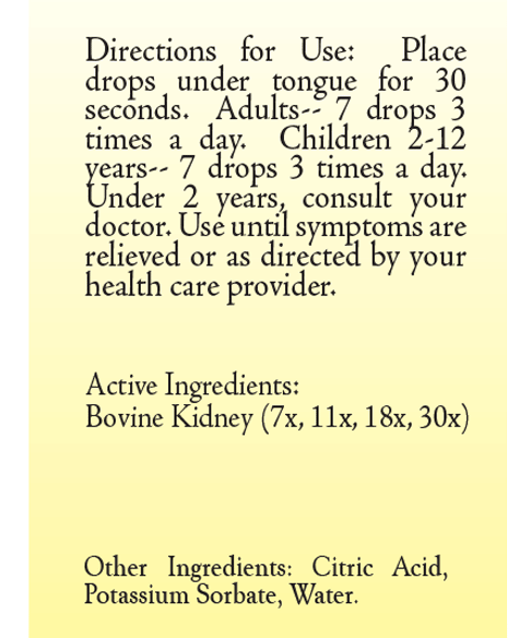 This remedy is intended to assist the general constitutional health of the human organism or be used in specific conditions as directed by practitioners qualified in homeopathic or complementary health care. The effectiveness of this Renes (Kidney) Pentas homeopathic remedy can be significantly increased by combining its use with the Renes (Kidney) pure organ concentrated supplement.
