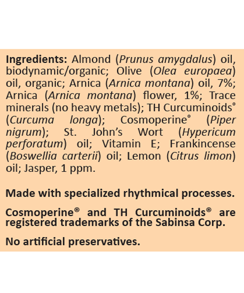 Rudolf Steiner's research indicates that arnica applied to the skin has the ability to call upon the restorative forces from deep inside the organism to come and help the parts at the periphery. True Botanica topical arnica products have the highest amount of actual arnica oil on the market.