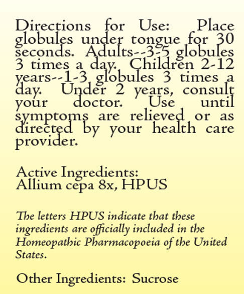 Directions for Use: For best results place globules under the tongue for 30 seconds. Adults-3-5 globules 3 times a day. Children 2-12 years-1-3 globules 3 times a day. Under 2 years, consult your doctor. Use until symptoms are relieved or as directed by your health care provider.
